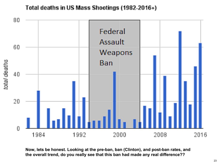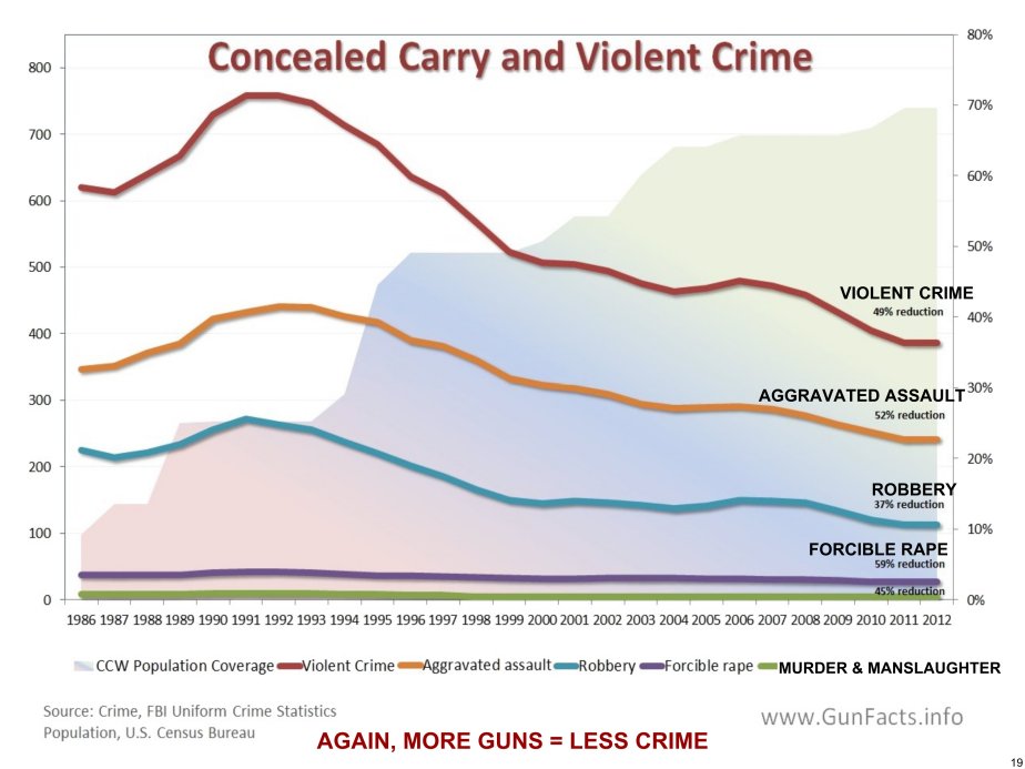 - From 1950-2010, not a single mass public shooting occurred in an area where general civilians are allowed to carry guns