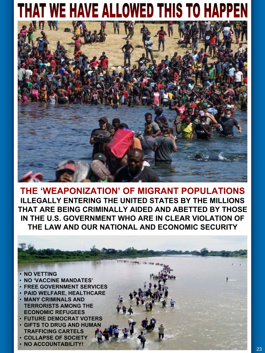 On January 10th of 1963, forty-five current communist goals were submitted to the Congressional record. Number thirteen was, “Do away with loyalty oaths.”Sixty years later on the very same day, Biden, Obrador, and Trudeau met in Mexico City for the Declaration of North America which states a plan to unify North America under the ideas of diversity, climate change, migration, health, and regional security. The beginnings of a North American Union, which is a step towards a one world government.