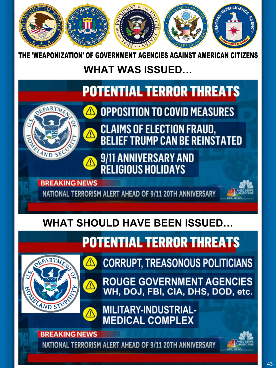 - POLITICIZED AND CRIMINALIZED GOVERNMENT CONTROL OVER AND WEAPONIZATION OF OUR LAW ENFORCEMENT AND OTHER AGENCIES