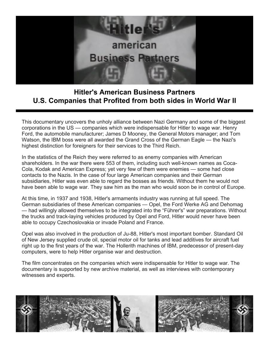 (just as were all the Allies) by many of the very the same companies in the war effort in a 'Survival of the Fittest Test' to see who will come out on top for their next round of Profits, Power, and Death, through their Global Manipulation of People and Nations . . .