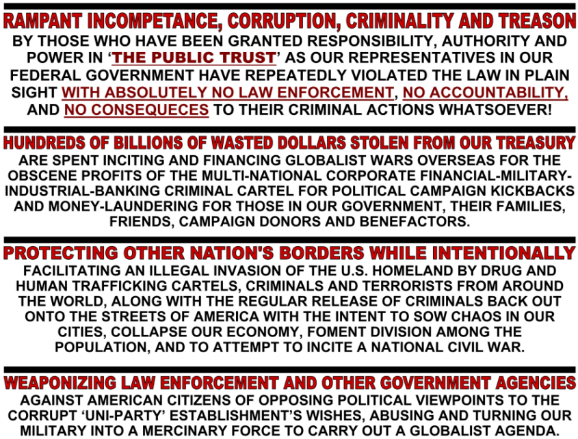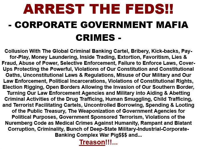 THE UNITED STATES GOVERNMENT IS CURRENTLY UNDER FOREIGN AND DOMESTIC ENEMY OCCUPATION BY A TREASONOUS DEEP-STATE CORPORATE CRIMINAL CARTEL WHO HAVE INFILTRATED, CORRUPTED, AND HAVE TURNED GOVERNMENT POWER AND RESOURCES AGAINST THE AMERICAN PEOPLE